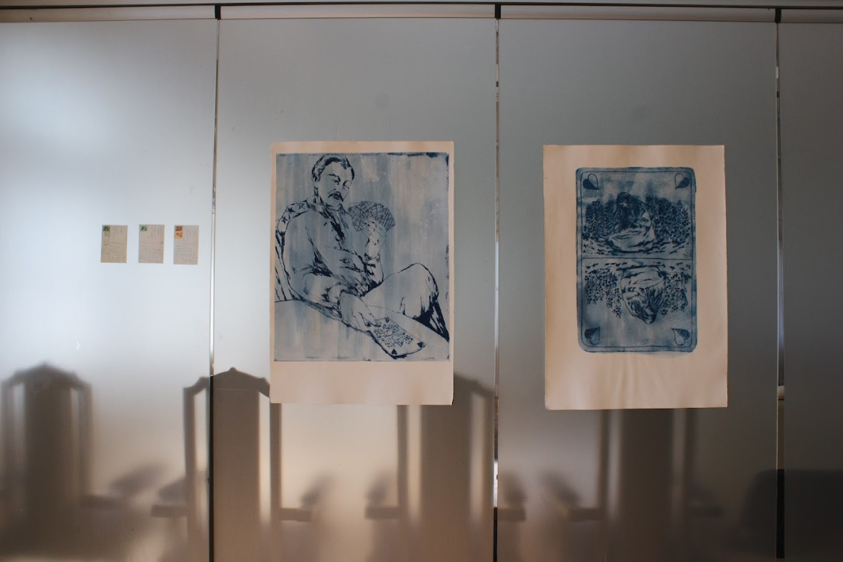 Ovim radom Maja Perak uspostavlja novi put komunikacije s ljudima iz prošlosti, pretvarajući njihove kratke poruke u vizualne priče. One su nekada putovale poštom, a sada su našle svoje mjesto u plavim tragovima na crtačkom papiru.